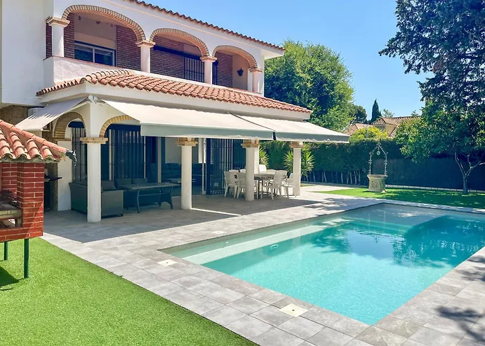 Villa Alamos Jerez I Piscina Salada Climatizada I Bbq I Jardines I 850M2 está situada a una distancia de 2 km del Museo Arqueológico de Jerez y ofrece a los huéspedes la posibilidad de disfrutar de sus veladas en un patio con una piscina y mesa de comedor. La villa, que ofrece vistas a la piscina, invita a los huéspedes a visitar el Zoobotánico Jerez, situado a 2 km.